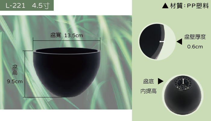 L-221 | 4.5寸- 13.5D x 9.5H cm |